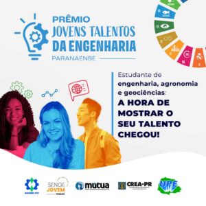 É com grande entusiasmo que comunicamos a abertura das inscrições para a 1ª edição do Prêmio Jovens Talentos da Engenharia Paranaense, promovido pelo Senge-PR, com o apoio da Mútua-PR e em parceria com o Crea-PR, UPE e UTFPR. O prêmio reconhece estudantes e jovens profissionais com projetos de inovação, pesquisa e impacto social.